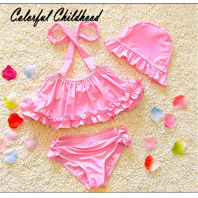 Price Comparisons For - Summer sunny Children's swimsuit girls bikini swimwear solid Comfortable 2018 3pcs/set bikini girls children baby girl swimwear Special Price